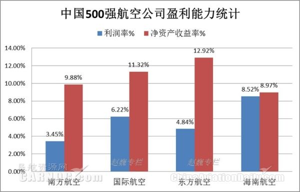 ◎四大航净利润率和净资产收益率相对全球500强航空公司相对较差。